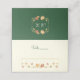 O romance do outono é capturado neste cartão de casamento. Folhas caídas em cascata através da carta em uma torrente de vermelhos, laranjas e dourados contra um fundo creme. As folhas de carvalho e de carvalho são destacadas. Um verde florestal profundo adiciona contraste ao fundo e dispara um monograma personalizável. A queda está no ar com esta carta elegante.
