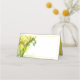 Este cartão de lugar dobrado é mostrado em branco básico com uma adorável impressão de arte de flores amarelas freesia. O interior da placa é amarelo. Personalize este item ou apenas o comprar como está e escreva o nome manualmente. Imagem licenciada