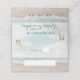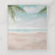 Cena de praia pintada por brisa de ilha, com Ondas de Oceano, praia de Sandy e Palm Trees, com um belo céu azul-lacrimogênio. Com Fontes Modernas De Script De Tipografia. Uma Praia Tropical de Verão, Ou design de casamento de destino - Cartão de lugar de lugar de mesa de convidado de Recepção de casamento personalizada! Veja meu compro para ver a suíte de casamento inteira para este design!