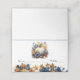 Abóbora branca e folhas de colheita azuis e laranja. Personalize frente e verso com os detalhes do seu casamento. Placa RSVP correspondente aqui: https://www.zazzle.com/white_pumpkin_elegant_fall_garden_wedding_rsvp-256582952588307139
