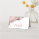 Um fundo de abstrato que lembra o mármore em tons de rosa pincelado suave através do esticado e veinado com ouro rosa de reluzente é o pano de fundo para o texto elegante da escrita e os layouts modernos da design nos pedaços desta bela suíte de casamento. O cartão de lugar da mesa de casamento mostrado aqui contém o texto acima, mais o texto opcional de 'mesa' e um modelo para adicionar seus nomes e data de casamento no sentido inverso. Procure ID644 para ver todas as peças de coordenação neste conjunto.
