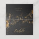Um fundo de abstrato que lembra o mármore em tons de cinzas de carvão a preto, veinado com ouro reluzente, é o pano de fundo para textos elegantes e layouts modernos de design nos pedaços desta bela suíte de casamento. O cartão de lugar da mesa de casamento mostrado aqui contém o texto acima, mais o texto opcional de 'mesa' e um modelo para adicionar seus nomes e data de casamento no sentido inverso. Procure ID644 para ver todas as peças de coordenação neste conjunto.