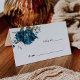 O cartão de lugar para o seu casamento com o número da mesa romântica e rústica, com a ilustração aquosa das flores azuis do marinho com verde.