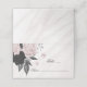 Flores rosas, pretas e cor-de-rosa, com lindas folhas de cinza prateada, num cartão de fundo mármore