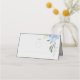 Um cartão de lugar floral hydrangea azul, com fundo branco esbranquiçado na frente e no verso. Parece na moda e chic em qualquer configuração de mesa. O número da tabela deve ser colocado dentro ao pequeno círculo. Personalize os nomes do casal na parte traseira do cartão para torná-lo seu.