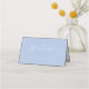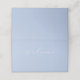Mínimo, azul empoeirado e cartão dobrado branco. Este cartão de lugar de mesa de casamento, apresenta uma fonte moderna de script, uma linha para nomes de hóspedes de escrita manual, bem como uma área opcional para texto extra no dentro do cartão.
