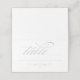 Cartão de escolta de estilo dobrado elegante em branco (a cor de fundo pode ser personalizada) e esquema de cor da cinza prateada. Apresenta um escrevendo de escrita de caligrafia e um sotaque de design de rolagem.