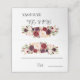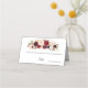 Cartão de mesa de casamento, com flores vermelhas, brancas e roxas, com folhas verdes de árvores, acrescentar a personalização, o nome do casal e a data do casamento, clicando no link Personalização.