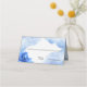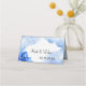 Cartão de mesa de Casamento Personalizado, apresenta flor azul, adiciona a personalização, o nome do casal e a data do casamento, clicando no link Personalização.