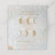 Lindo tema da Nova Era falso ouro brilho zodíaco cera Lua Casamento Mesa Dobrado Cartão com fundo azul celeste e detalhes decorativos da tipografia caramelo, que podem ser facilmente personalizados nos lados frontal e inverso com suas próprias opções de texto. Projetado para coordenar com itens e acessórios adicionais de papelaria de suíte de casamento para criar um tema completamente unificado.