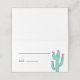 Cartão de casamento de desenho de cactos brancos e divertidos. Ilustração do cacto em rosa e verde com elementos florais. Você pode escrever os nomes do convidado e o número da tabela no cartão. Design moderno e moderno.