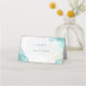 These modern abstract beach wedding place cards feature teal and gold alcohol ink splashes for a subtle coastal vibe. Perfect for summer seaside and tropical beach destination weddings.