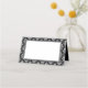 Este cartão de lugar é mostrado em uma adorável impressão de damask preto e branco. Personalize este item ou comprar como está.
