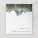 Cartão de lugar para o seu casamento com ilustração de montanha azul com floresta de pinheiros.