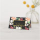 Padrão floral de cor d'água elegante, com uma pincelada e flores brancas, com botânicos verdes sobre fundo preto. Um delicado e igualmente elegante quadro de ouro anestala a atribuição do número da mesa sob uma linha de ouro para que você escreva os nomes de seus convidados. o verso do cartão inclui e elegante e personalizável bem-vinda à nossa mensagem de casamento, nomes de noivas e noivos e data de casamento.