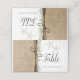 Cartão De Mesa Número de mesa de juta com estrela-do-mar da praia