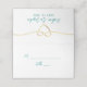 Cartão de casamento elegante, simples, branco e teal, com coração de corda dourada e roteiro de caligrafia manuscrito moderno.