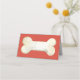 Esta placa de lugar de cadela pode ser usada como cartões de lugar tradicionais onde você escreve seu nome de hóspedes manualmente ou os usa como etiquetas de comida para seu partido. Deem-vos nomes temáticos de cães divertidos usando estes adoráveis cartões de cão. Este design apresenta um osso de cão num fundo vermelho.