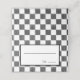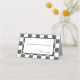 These place cards are ready for you to write in the name of your guest(s) and their table number. The white box with a black frame for writing in your info is set against a black and white checkerboard background with black squares with a painted look and plain white squares making up the check design.