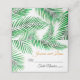 Este simples design apresenta folhas de palma verdes vibrantes sobre um fundo branco nítido. A carta se reverte para um bege arenoso com mais palmas. O estilo da fonte, o posicionamento e a cor podem ser alterados como quiser. Isto é parte de uma suíte de casamento que pode ser totalmente personalizada.