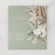 Um cartão de lugar dobrado de na moda botânico tropical boêmico moderno. Lindas aquarelas florais e botânicas impressas à mão e texto de script. Moderno em tendência sage green design.