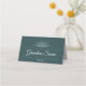 Este cartão de lugar elegantemente desenhado apresenta um fundo verde rico, acentuado com um delicado e ornamentado motif no topo, simbolizando a dignidade e a tradição. As palavras "vovó Susan" são graciosamente escritas em uma fonte sofisticada e fluente, seguida de uma designação de "Mesa 1" nítida, todas envoltas por sutis espirais decorativas. A design capta a essência do patrimônio e respeito, perfeita para atribuir assentos em reuniões formais, especialmente aquelas centradas em tradições familiares queridas.