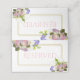 Estes bonitos cartões de lugar facilitarão aos seus hóspedes saber quais lugares são reservados na sua cerimônia de casamento ou recepção. Eles apresentam um texto cor-de-rosa sobre um fundo branco com uma borda de quadrados offset dourada e um belo buquê pastel de flores, incluindo rosas cor-de-rosa, lírios e orquídeas brancas, e hidrangea púrpura ou lavanda leve. O texto é totalmente personalizável.