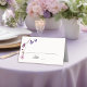 Uma ilustração encantadora de aquarela com um tema de borboleta, com borboletas roxas e flores silvestres roxas e rosadas em um estilo bonito e adorável. A elegante caligrafia lúdica coloca um toque extra e enfeita esse cartão de lugar, perfeito para uma celebração de primavera ou verão com tema de jardim, tema de borboleta, tema de flor silvestre ou tudo mais.