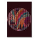 Eleve seu evento com este cartão de mesa ousado e dramático, apresentando um design circular listrado que irrompe em tons de arco-íris saturados, cúpulas surreais e árvores caprichosas - tudo isso contra um fundo rico e profundo burgundy. A ilusão de faixa óptica atrai o olhar enquanto as cores vivas fazem cada mesa se destacar, seja em um casamento sofisticado, celebração cultural, jantar de gala ou banquete festivo de feriado.