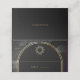 Cartão de casamento místico celestial personalizado, com armação de arco com galáxia de caminho leitoso céu à meia-noite, poeira estrela, lua crescente e outros símbolos astrológicos em cores pretas e ouros. Esta placa de lugar é facilmente editável. Se precisar de ajuda para a personalização deste produto ou se precisar de mais produtos correspondentes para esta coleção, envie-me gentilmente o Zazzle.