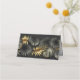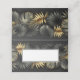 Este cartão de lugar dobrado é mostrado em branco básico com uma adorável impressão de folhas tropicais de palma preto e dourado. Personalize este item ou comprar como está. Imagem do stock freepik.com