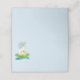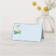 Este cartão de lugar dobrado é mostrado em azul pastel com pintinhos festivos Felzs pascoa e impressão de ovo. Personalize este item ou comprar como está.