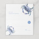 Cartões de casamento em praia com design de escolha de refeição que apresenta caranguejos azuis de cor-d-água únicos. Espaço previsto para o nome de convidado, número de mesa e escolha inicial da refeição: v) vegan, c) frango, b) carne de bovino (f) peixe ou gf) sem glúten. Cartões invertidos para revelar nomes de noiva e noivo e data do casamento. O dentro apresenta uma cor azul sólida complementar. Projetado para combinar com a coleção de caranguejos costeiros de Do Tell a Belle. Para ver mais designs como esta visite www.zazzle.com/dotellabelle Arte aquosa e design por Victoria Grigaliunas do Do Tell A Belle