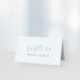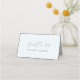 O cartão de lugar para convidado pastel quinceanera bonito e delicado inclui o nome e o número da tabela em texto de cor de cinza prateada sobre um belo fundo azul. O aspecto clássico e a escrita elegante da caligrafia tornam esta placa de lugar perfeita para muitos eventos especiais.