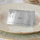 Placas de lugar dobradas com recepção de casamento de brilho prateado. Personalize-o com os detalhes do evento.