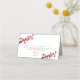 Guie seus convidados para seus assentos em estilo com este cartão de lugar com tema florescente. Apresentando um fundo branco com flores de cereja vermelha, um ramo preto e texto preto, este design adiciona um toque moderno e inspirado na natureza às suas configurações de mesa. Perfeito para primavera ou casamentos elegantes com uma paleta de cores ousadas.
