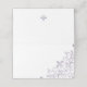 O padrão detalhado da regência francesa, púrpura, de pulgas de Lis, impresso no canto inferior e no verso, dentro impresso em violeta de wisteria, acrescentando esse toque especial aos seus locais/cartões de escolta no dia do seu casamento. Projetado para combinar com a nossa Coleção de Casamentos Roxo de Lis.