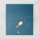 Um foguete vermelho e branco de ficção científica em fundo azul. Use uma caneta de tinta branca para preencher os detalhes.