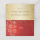 Placa de ocasião com rosas de ouro estilizados e confete colocado sobre um fundo de gradiente vermelho.