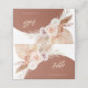 Uma elegante carta do local do casamento teracotta boêmia do terracotta, em queda, para a caligrafia do número da mesa, marcada com rosas cor-de-água mudada cor-de-rosa, roxa e seca branca, grama-pampas e folha de palma com fundo de arco lateral.