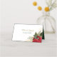 Esta placa de lugar de mesa bonito apresenta uma buquê bonito com folhas verdes e embelezamento dourado. Seu texto personalizado está em verde-escuro no centro inferior. A parte traseira da placa tem mais dois campos de texto personalizados em verde e ouro correspondentes e uma imagem floral de canto inferior correspondente. As imagens e o texto são colocados sobre um fundo branco. A dentro do cartão é verde-escuro. Certifique-se de ver os produtos correspondentes, incluindo convites, em nossa loja.