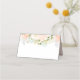 Rosas de pêssego claro com aquarela, buquês com placas de lugar dobradas em verde. Personalize com seu nome de convidado e número da tabela