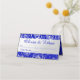 Um cartão de lugar clássico com um belo motivo rosa em folha prateada sobre fundo azul real. Esta é parte da coleção de casamentos de chic que inclui um convite, um menu, cartões de números de tabela e muitos outros itens que podem ser totalmente personalizados.