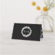 Coroa de rosa branca e preta com suas iniciais. Cartão de escolta dobrado. Esta placa de lugar apresenta uma coroa branca feita de rosas no estilo vintage com uma abordagem moderna e contemporânea.