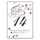 Ruby Red Heart confetti com 'Mesa' na Caligrafia de Script de rico - pronto para ser personalizado com detalhes do seu casamento e número de tabela