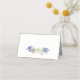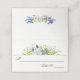 Um cartão de lugar encantador para sua recepção de casamento ou banquete, o design de inspiração natural apresenta flores silvestres delicadas em tons de água mistos de roxo, azul, amarelo e branco com verde e galhos de floresta como cipós. O texto mostrado nesta placa de lugar pode ser editado para qualquer texto desejado.