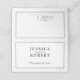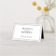 Elegante borda editável com noiva de marca e nomes de noivo. Script de mesa opcional no verso, para que você escreva o nome e o número da tabela dos convidados.