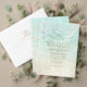 A watercolor texture in the soft shades of sea and sand is the background for marine elements such as starfish and seashells that are enhanced with waves of sea foam to create the pieces of this wedding suite. The wedding table place card shown here features all of the above plus a template to easily add your names and wedding date on the reverse. Search ID837 to see all the coordinating pieces in this set.
