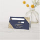 Cantos de sequenciação dourados impressos elegantes, quic e glamourosos faux e scripts dourados sobre fundo azul marinho, cartões de lugar. Este design clássico e sofisticado é perfeito para qualquer evento de na moda e tendências, incluindo casamentos e ocasiões cotidianas. Personalize com sua própria mensagem na frente, assim como um monograma personalizado inicial no verso. Todas as impressão de fotos.