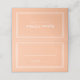 Simples, minimalistas e sofisticados, os cartões de identificação para convidados de casamento apresentam um design moderno com uma moldura dupla em branco crocante sobre um fundo de pêssego da moda. O design moderno é simples e fresco. Personalize os detalhes do casamento para seus convidados em letras elegantes e caligráficas. O verso do cartão apresenta um design correspondente personalizado com os nomes da noiva e do noivo. O cartão é completado de forma linda com branco crocante no interior para um visual elegante e discreto.